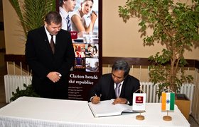 INDICKÝ VELVYSLANEC PODĚKOVAL OSTRAVSKÉMU CLARIONU ZÁPISEM DO PAMĚTNÍ KNIHY